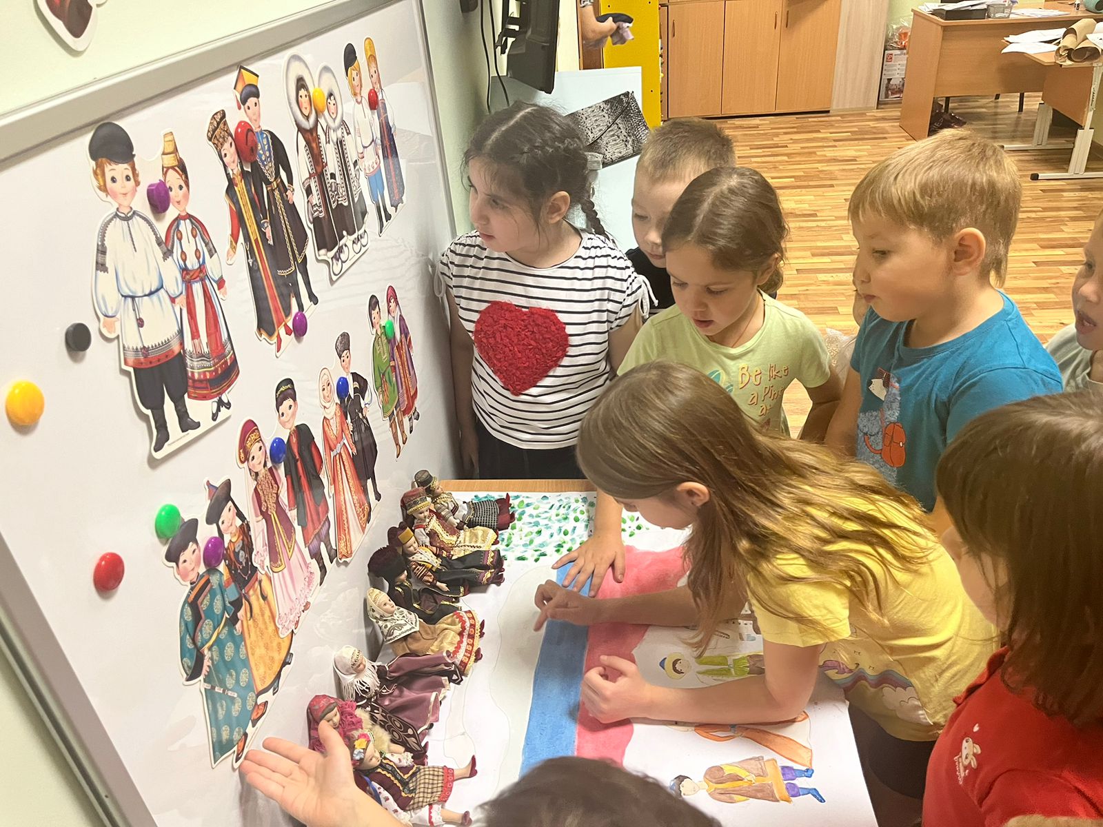 Материалы и оборудование: мультфильм «Многонациональная страна»; куклы в национальных костюмах; демонстрационные картинки разных национальностей.