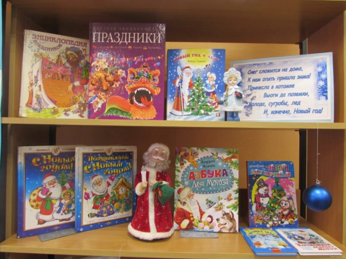 В книжном уголке дети смогут найти любимые книги по новогодней тематике, например: «Лисичка-сестричка и серый волк», «Заячья избушка», «Щелкунчик и мышиный король», «Чудеса в зимнем лесу», «Зимовье зверей». Обязательно имеются книжки-малышки с зимними потешками, частушками, стихотворениями.