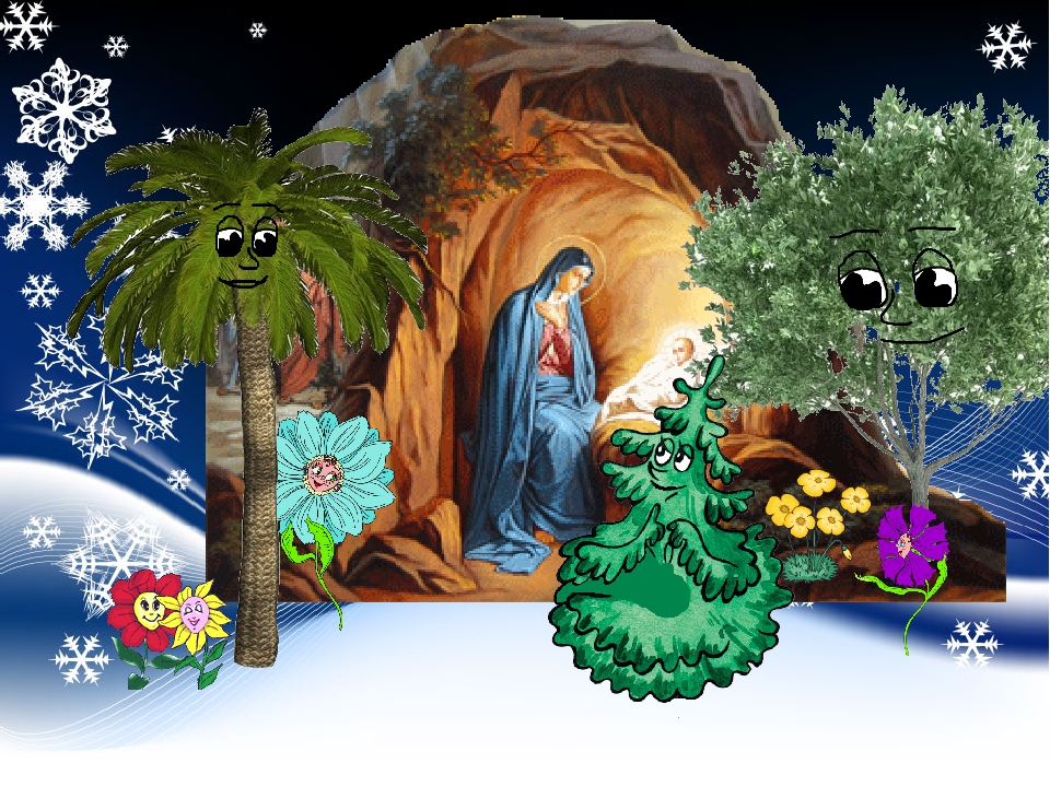 — Пойдем и мы поклонимся Божественному Младенцу и поднесем Ему наши дары,— говорила, обращаясь к маслине, пальма.