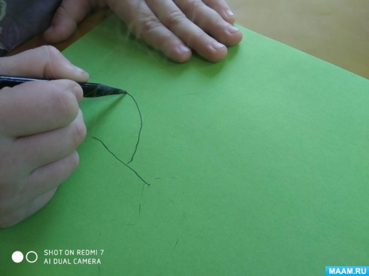 1. Создание наброска будущей открытки с помощью простого карандаша.