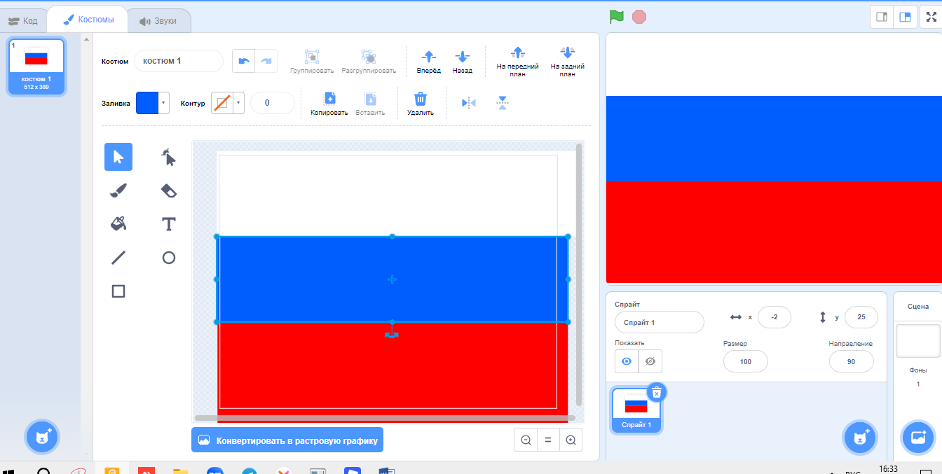 Мастер-класс урока по Scratch 3 на тему «Флаг — три главных цвета моей Родины»
