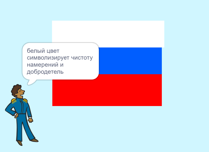 Расскажите ученикам историю происхождения российского флага, символику цветов и их значение.