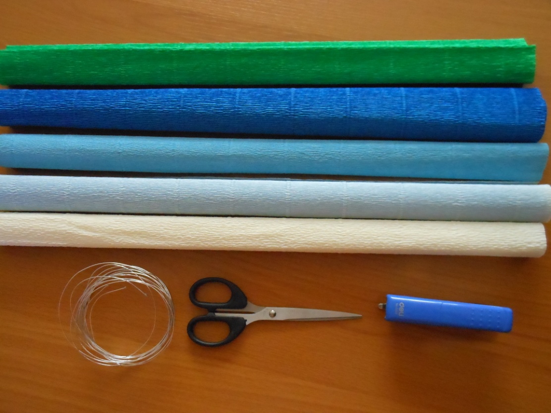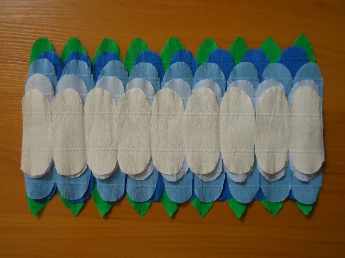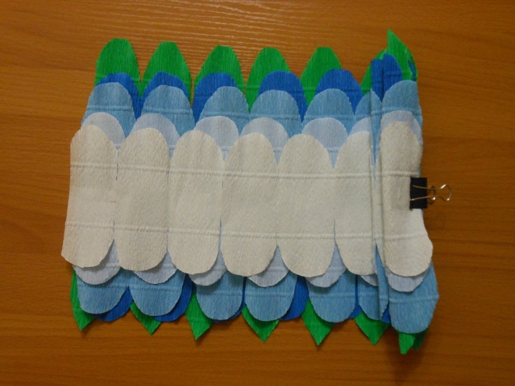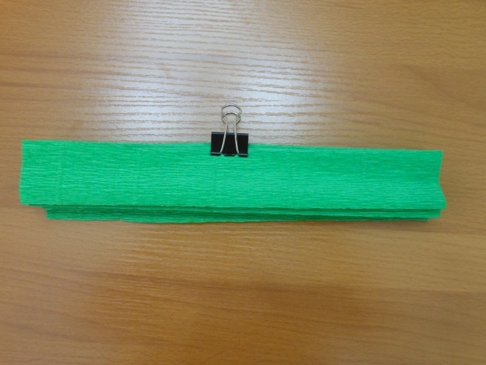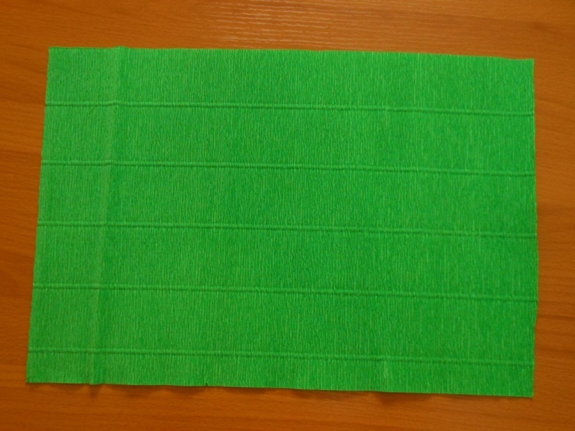 1. Вырежьте из зеленой гофрированной бумаги прямоугольник размером 25Х40 см.