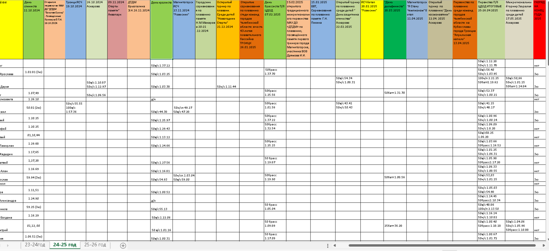 Приложение 1. мониторинг соревновательного периода 2024-2025
