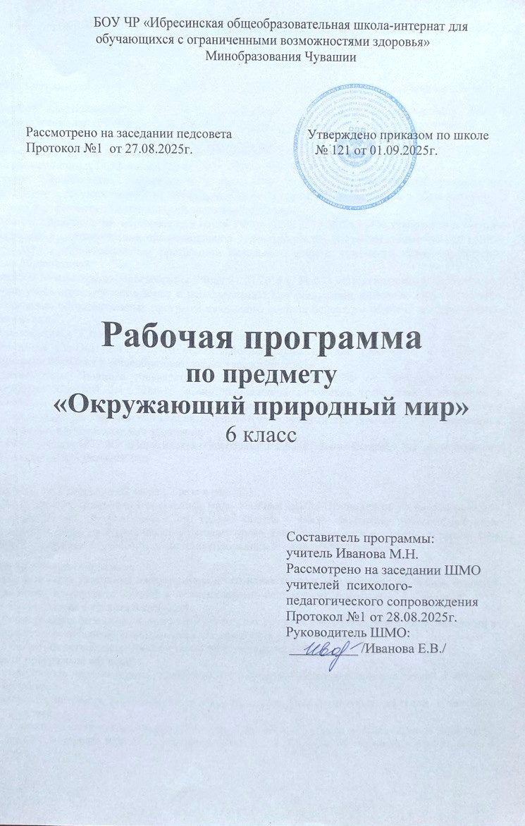 по учебному предмету «Окружающий природный мир» в 6 классе