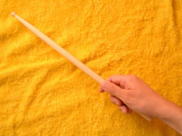 Палочку нужно держать так, чтобы соблюдался баланс, при котором удар и отскок будут экономичны. Визуально можно поделить палочку на три части и держать ее за последнюю часть – 8-9 см до конца.