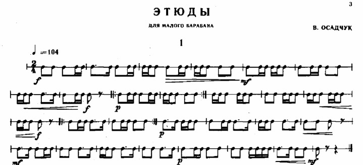 Осадчук В. 60 ритмических этюдов для малого барабана. – М., 1957. – 60 с.