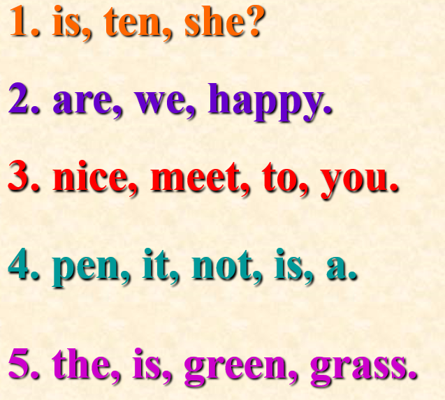 Teacher: You see the words on the board. You have to make sentences using them.