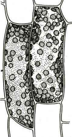 - клетки листа элодеи с хлоропластами;