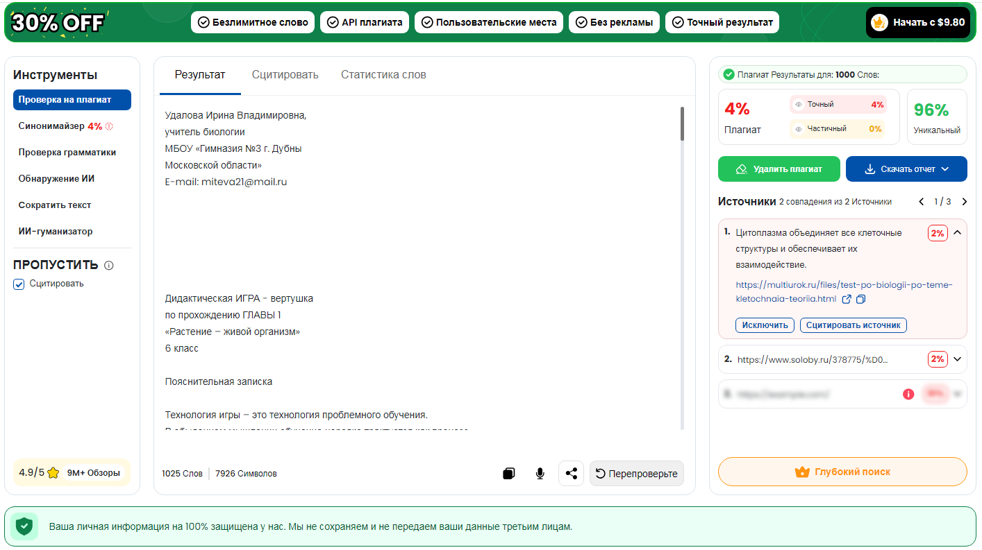 Учитель в течение 5 - 7 минут читает мини-лекцию, сообщая участникам краткое содержание пройденной темы «Растение – живой организм».