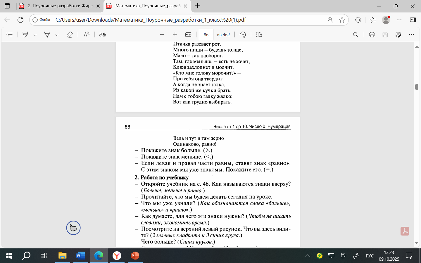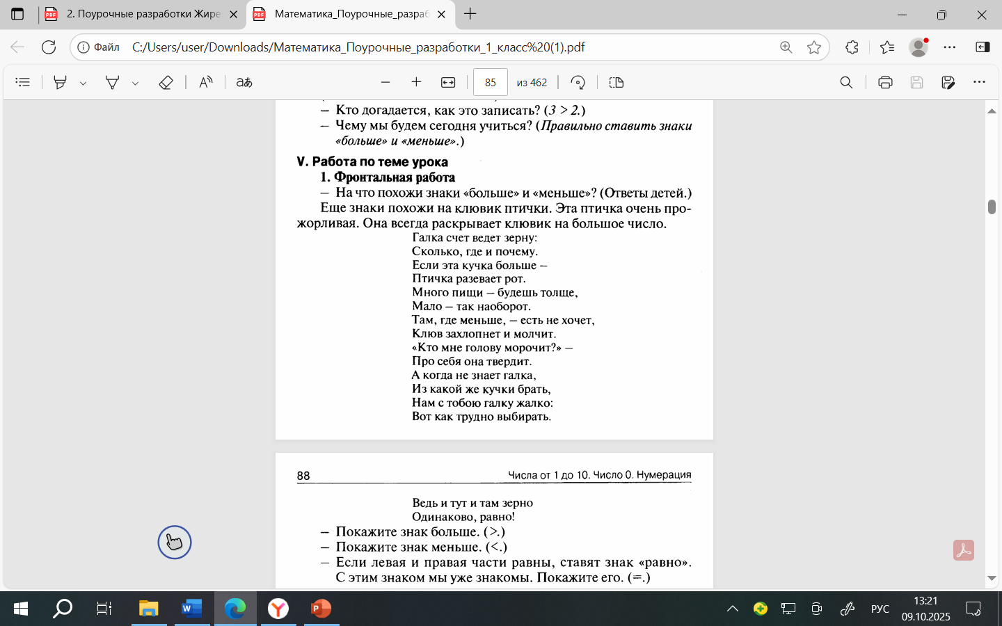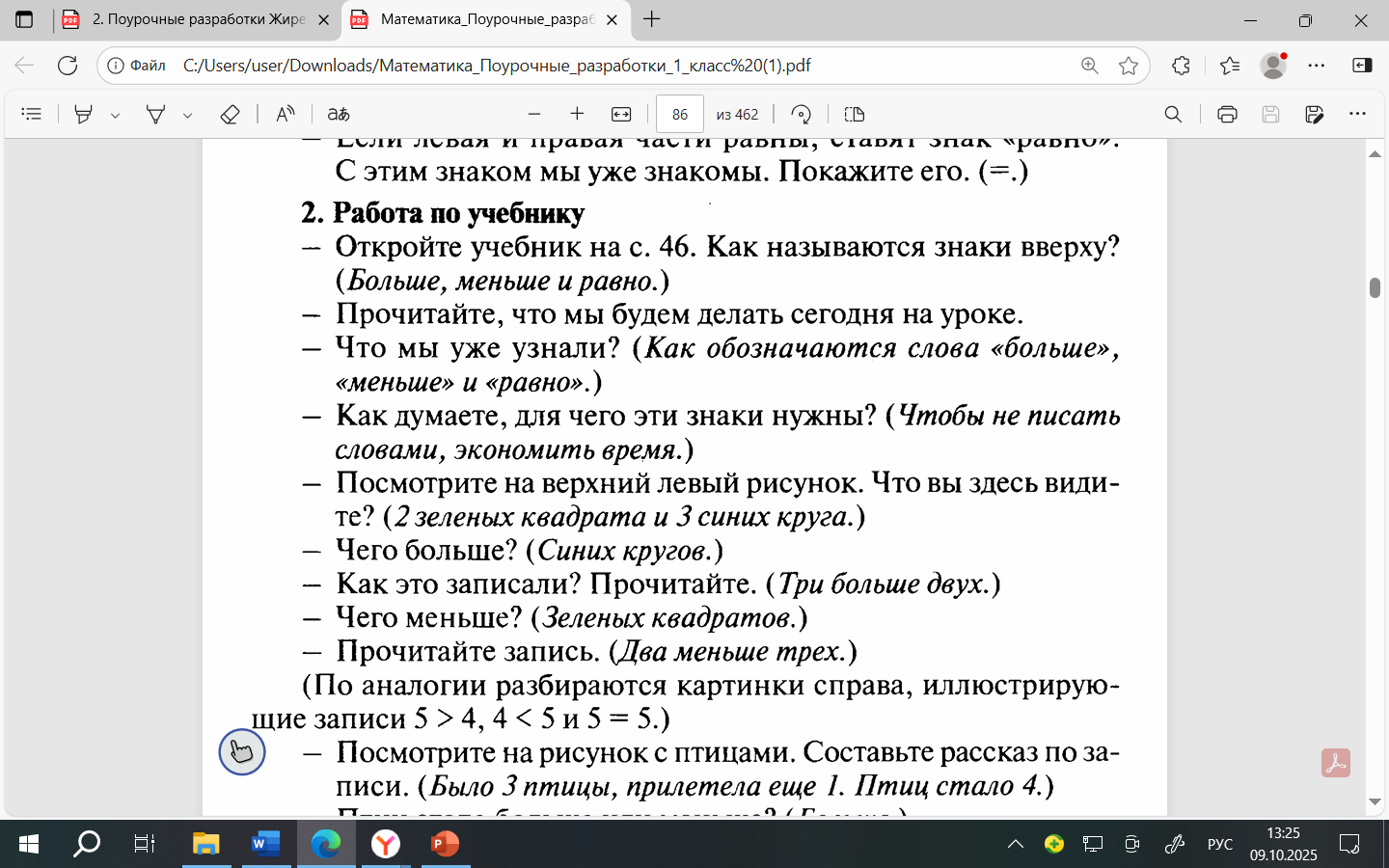 Урок математики в 1 классе "Больше, меньше, поровну"