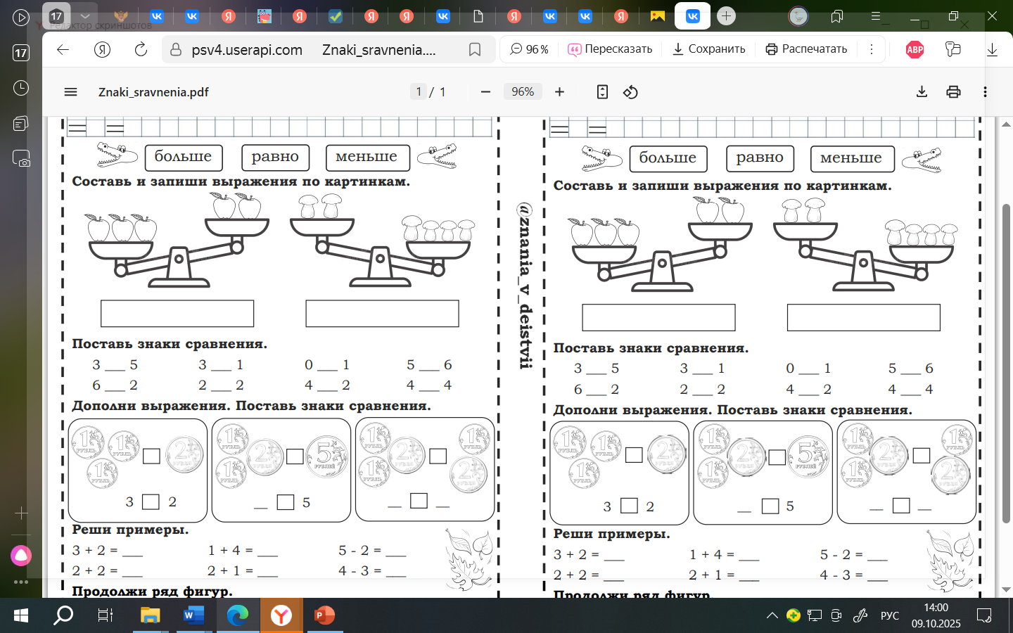 Тема: «Больше, меньше, поровну».