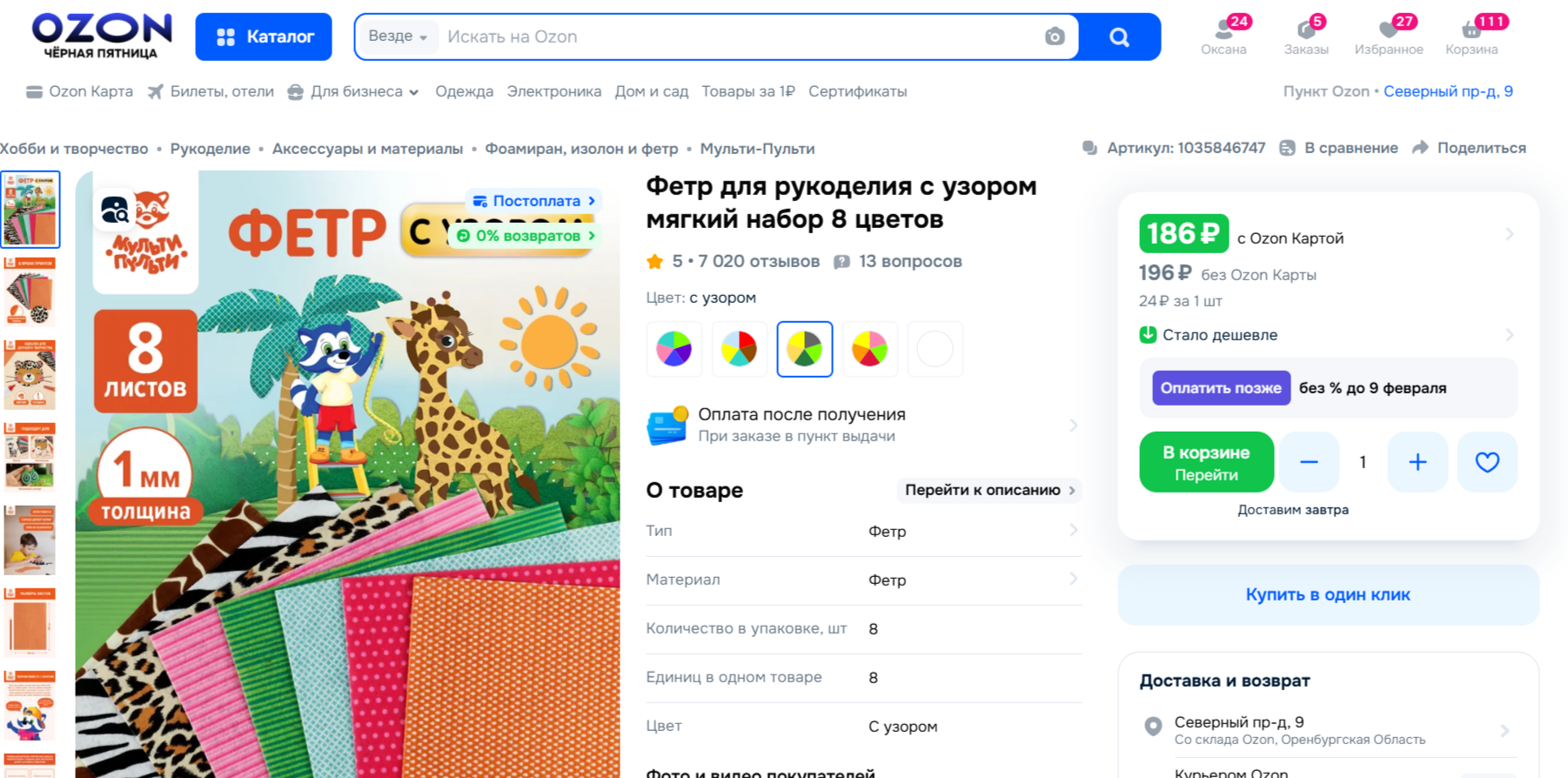| https://www.ozon.ru/product/fetr-dlya-rukodeliya-s-uzorom-myagkiy-nabor-8-tsvetov-1035846747/ 186 руб:8 человек= 23.25 руб |