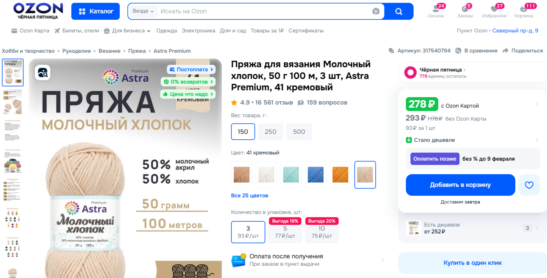 2 | Пряжа | https://www.ozon.ru/product/pryazha-dlya-vyazaniya-molochnyy-hlopok-50-g-100-m-3-sht-astra-premium-41-kremovyy-317540794/?at=qQtJwKjOvcX4DgW1f4XK9OyFEoA6A3fgYPQ5yhymywmK 278 руб: 8 человек= 34.75 руб |