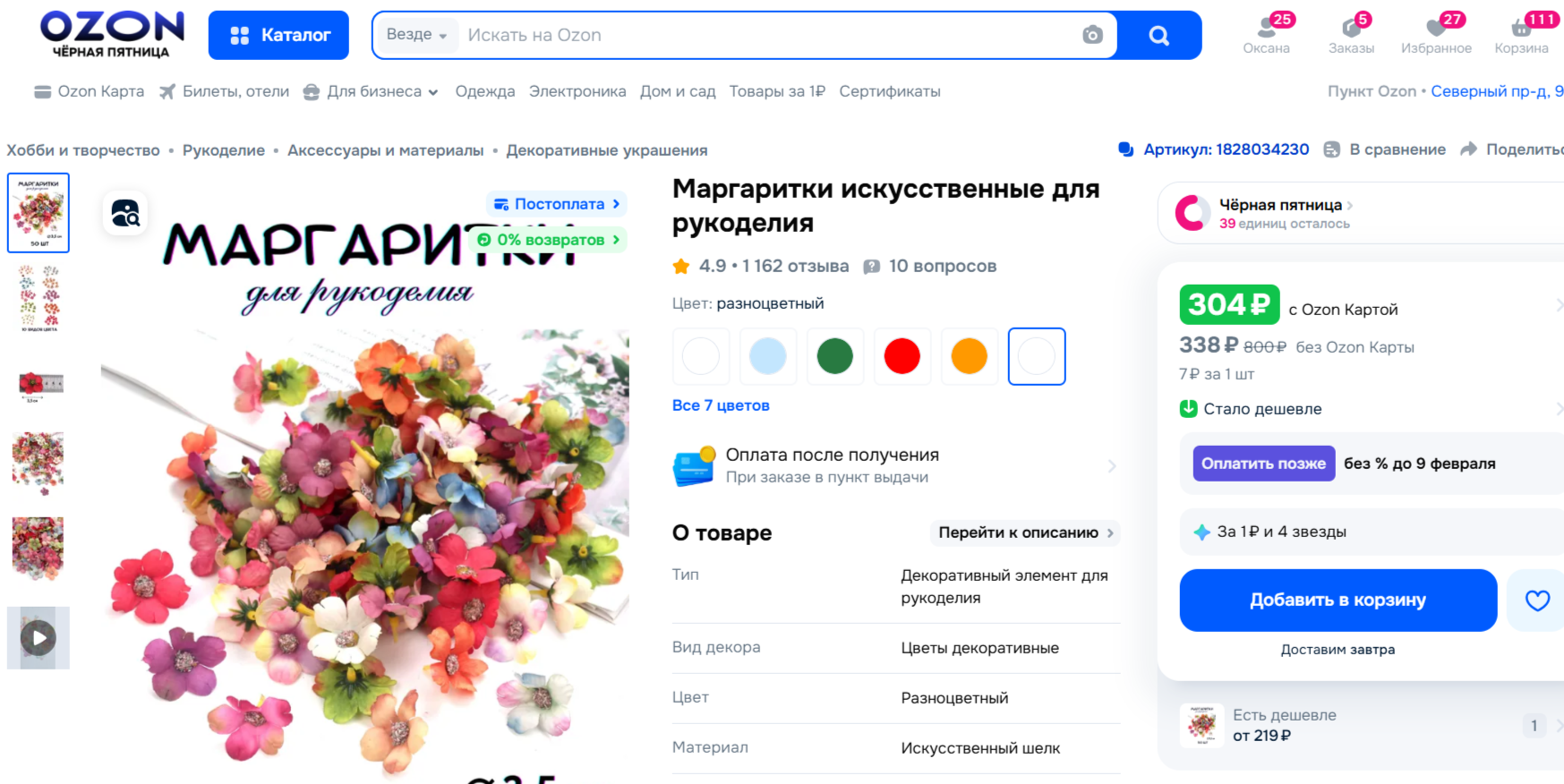 | https://www.ozon.ru/product/margaritki-iskusstvennye-dlya-rukodeliya-1828034230/?at=OgtEQzmAkcmR372rSN3PWBnUnwE24qFMln7YlHZA0Ov9 304руб :8человек=38 руб. |