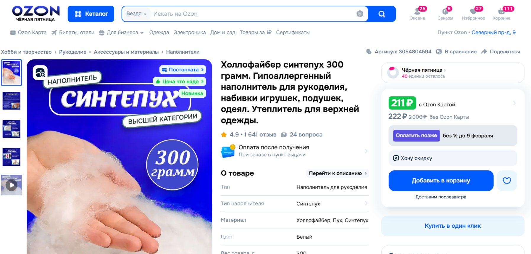 | https://www.ozon.ru/product/hollofayber-sintepuh-300-gramm-gipoallergennyy-napolnitel-dlya-rukodeliya-nabivki-igrushek-3054804594/?at=6WtZwjYoJC5PWGwBsEWrgZLf4P0mOYSDWJrE8HxGzzXj 201 руб:8 человек=26.37руб. |