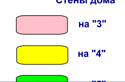 4) Самопроверка | -Кто завершит работу, вы сможете выполнить самопроверку по карточкам - помощницам, которые лежат у меня на столе. Оцените свою работу. Оценку поставьте в лист самооценки. - Возведите стены | Выполняют самопроверку по карточкам-помощницам. Возводят стены на интерактивной доске