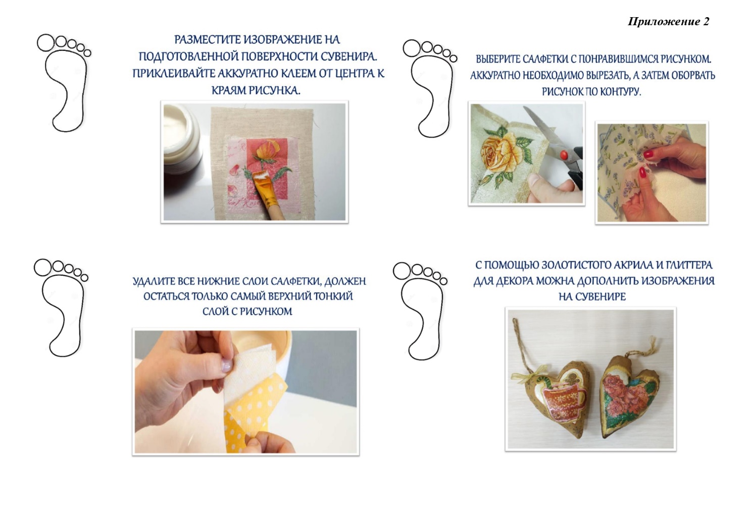 Выполнение задания по систематизации этапов декорирования сувенира в технике Декупаж - «Цепочка шагов»(Приложение 2)