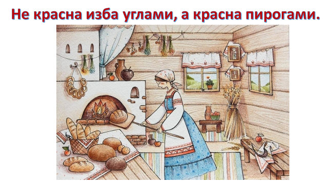 - Да, правильно. И даже есть такая русская пословица:«Не красна изба углами, а красна пирогами». (слайд 2)