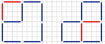 - Переложите 2 палочки так, чтобы у вас стал 1 маленький квадрат и 1 большой.