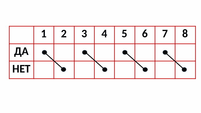 - На партах у вас лежат листочки. Обратите внимание, там всего написано два слова «Да – нет». Сейчас я буду зачитывать математические высказывания. Если вы с ними согласны, то ставите точку в этом ряду в окошечке «Да», если не согласны, то ставите точку в окошечке в ряду со словом «Нет».