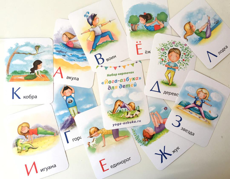 Предлагается тематическая игра по карточкам «Йога-азбука». Дети берут по одной-две карточке и возвращаются на свои коврики, поочередно демонстрируют асану с картинки. Педагог помогает с правильной отстройкой и все повторяют. У ребенка (который демонстрирует асану в данный момент) появляется ощущение ведущего на некоторое время, затем каждый ученик по очереди «ведёт» занятие под чутким руководством преподавателя. Таким образом группа сплочается, появляется уверенность (у ведущего), проявляется уважение остальных одногруппников к «ведущему», т.к. каждый будет на его месте.