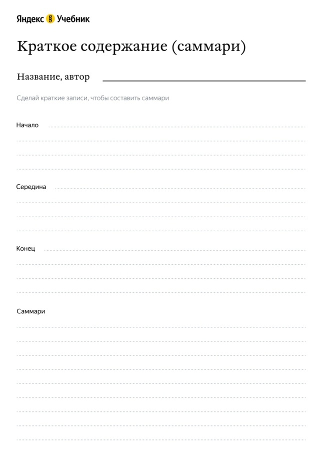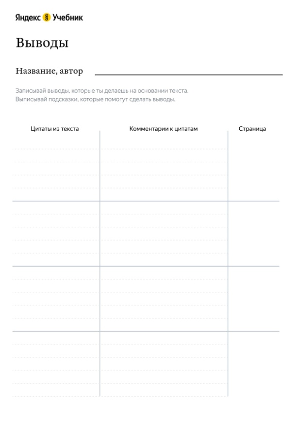 Рядом с каждой линией — место для цитаты из текста.