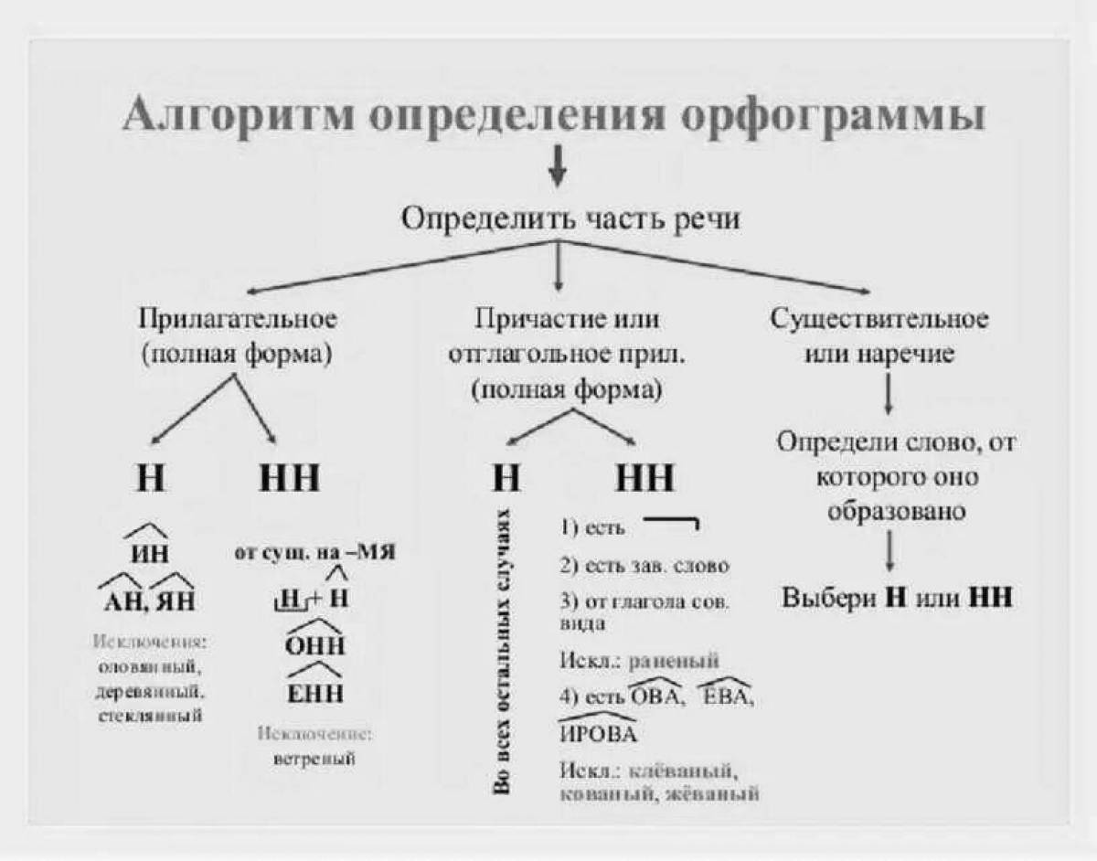знание правила правописания н и нн в именах существительных, именах прилагательных, глаголах, причастиях, наречиях;