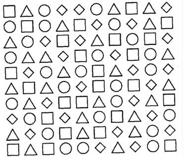 Ребенку показывают бланк с нарисованными геометрическими фигурами и просят закрасить цветным карандашом каждую из них. Предупредите ребенка, что он должен делать это очень аккуратно, время не имеет значения.