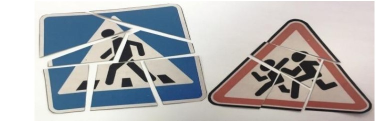 Команды на скорость собирают знаки «Пешеходный переход» и «Осторожно, дети».