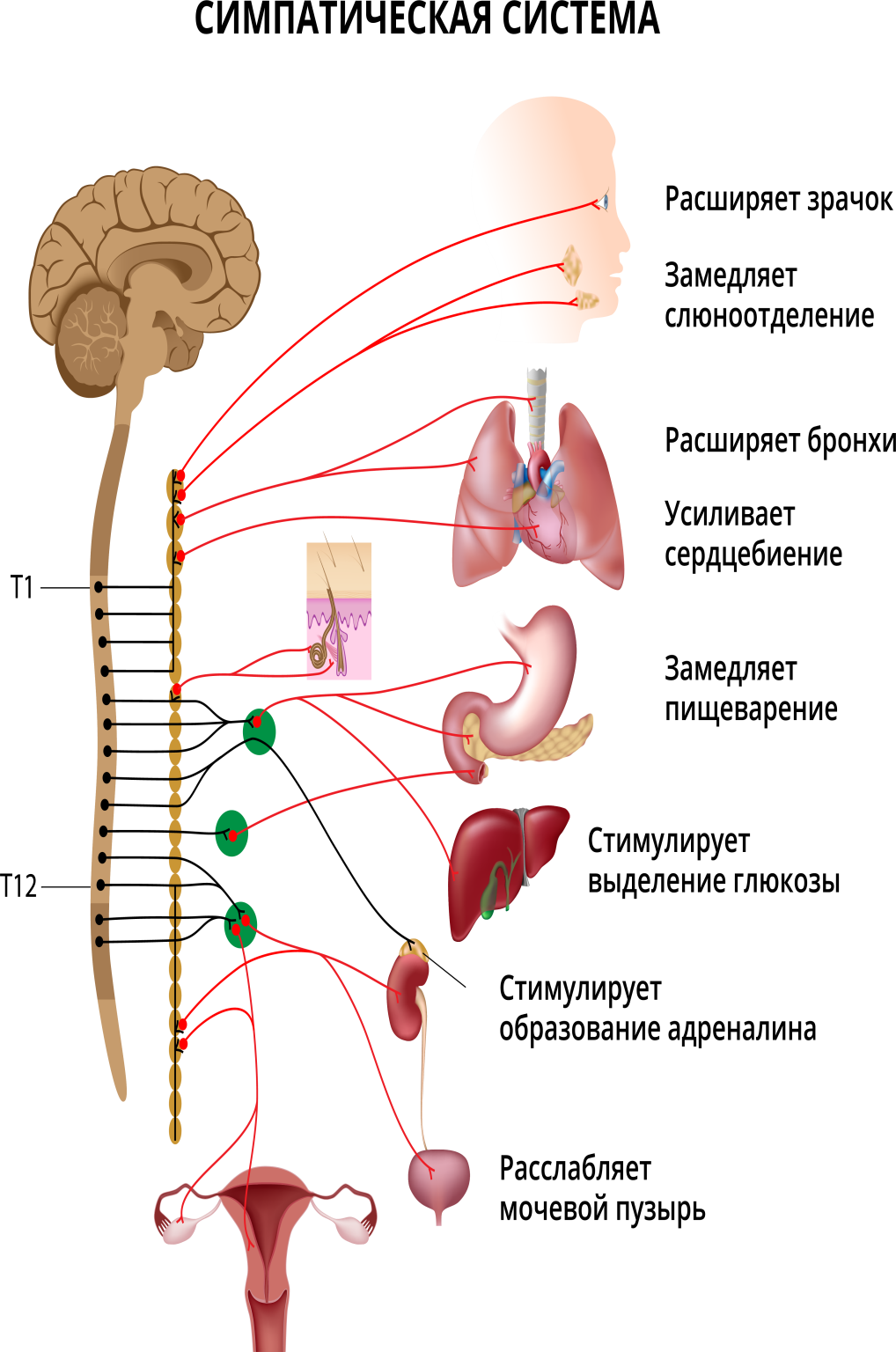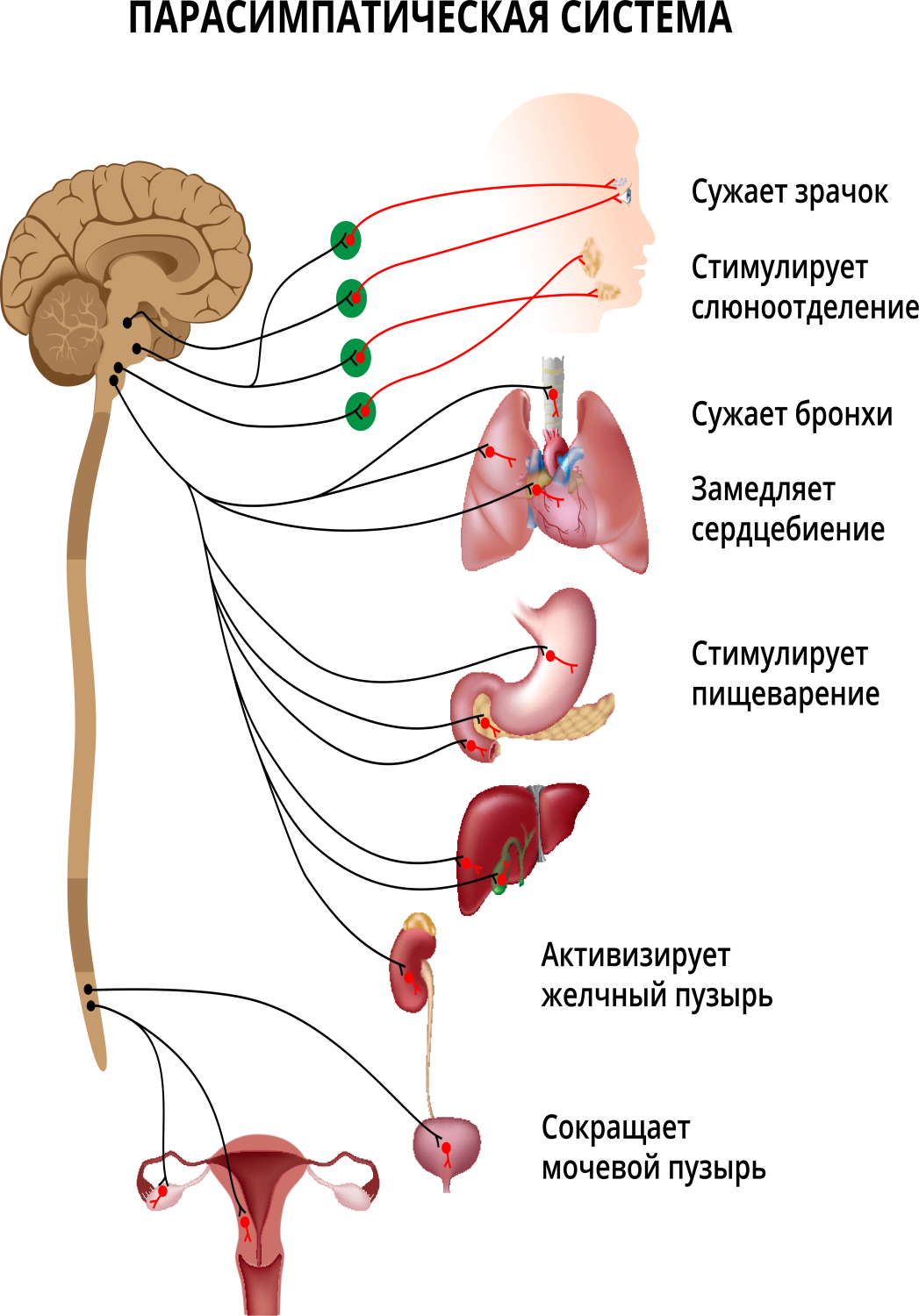 Попробуем разобрать более подробно парасимпатический и симпатические подотделы вегетативной нервной системы.