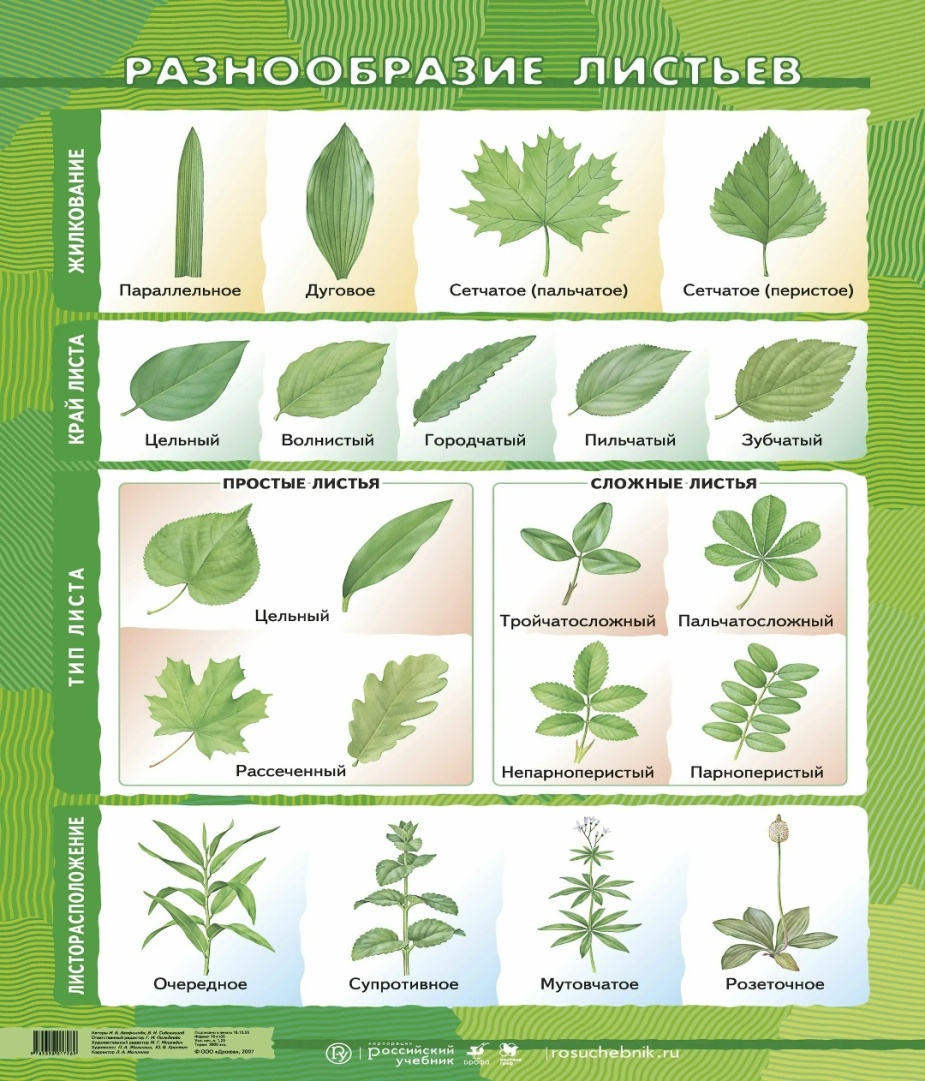 Листья: (простые/сложные, жилкование, расположение на стебле).
