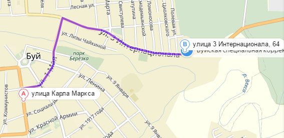 Начало экскурсии Цель: - создать условия для возникновения у обучающихся внутренней потребности включения в учебную деятельность. | Пешеходная экскурсия по маршруту «ГКОУ «Буйская школа – интернат – краеведческий музей имени Т.В. Ольховик города Буя Костромской области» |