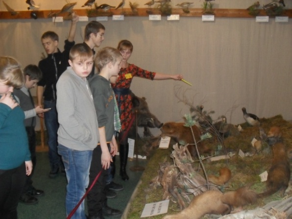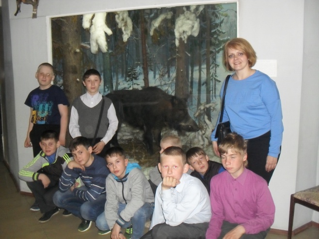 Знакомство с экспонатами музея Цель: Усвоение учебного материала. | В костромских лесах существует огромное количество видов животных. Популяция некоторых огромна, другие находятся на грани вымирания и занесены в Красную книгу, а какие - то уже навсегда исчезли с лица земли. Но благодаря сотрудникам музея можно не только познакомиться с животным миром костромских лесов, но и увидеть останки вымерших существ. Во время экскурсии можно получить наглядное представление об эволюционных явлениях происходящих в природе. Многие экспонаты музея представляют несомненный интерес для учащихся. В одном из залов выставлены чучела птиц и зверей; среди них очень многие представляют животных, имеющих охотничье и промысловое значение. Дикий кабан – всеядное парнокопытное из рода свиней, один из самых распространенных животных на Земле. |