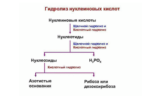 Нуклеиновые кислоты являются многоосновными кислотами, которые при мягком гидролизе щелочами распадаются на мононуклеотиды. Мононуклеотиды при нагревании до 145°С с водным аммиаком теряют остаток фосфорной кислоты с образованием нуклеозидов.