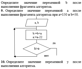 8. Исполните фрагмент алгоритма при a=4 и b=6000