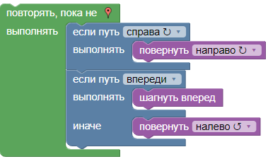 Выполните задание. Создайте программу обхода лабиринта с использованием наименьшего количества блоков. Скриншот программы загрузите на диск http://file.karelia.ru/ и в качества ответа вставьте ссылку на файл.