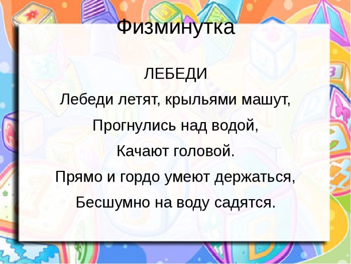 С.А.Есенин родился в Рязанской губернии, в селе Константиново 21 сентября 1895 года. Это было тихое, чистое, утопающее в садах село. Раздольные красивые заливные луга Родители Есенина были бедные крестьяне. У Есенина было две младшие сестры: Екатерина и Александра. Родители Есенина относились к своим детям сбольшой заботой и любовью, но старались их не баловать, держать в строгости. Целые дни проводил на природе. Любил поля, луга своего родного села, радовался и белой березке, и душистой черемухе, любил цветы, животных. В зимние вечера любил слушать бабушкины сказки, народные песни. Хотелось ему и самому сочинять. Свои первые стихи он сочинил в 9 лет. Первые стихи появились в 19 лет. А в 21 год вышла первая книга его стихов, под название «Радуница» - Кто готов представить свои результаты? Давайте послушаем. -Ребята, если вы согласны с ответом покажите зеленый кружок, если нет –то красный. С. А. Есенин был очень хорошо образован, много читал, охотно занимался самообразованием. Он действительно был очень талантлив и то ,что ему удалось стать выдающимся поэтом – это только дар, который дан от природы! Подготовка к первичному восприятию. -Откройте учебник на стр. 120 -Прочитайте название стихотворения. -Что интересного вы знаете о лебедях? - Лебедь – величавая и грациозная птица, символ чистоты, благородства, верности Первичное восприятие текста -Ребята, а сейчас мы с вами,прослушав стихотворение, узнаем как представил образ этой величавой птицы С.А. Есенин.Слушаем внимательно. -Ребята, вам понравилось стихотворение? - Какое настроение, какие чувства вызвало у вас это стихотворение? Взволновало ли оно вас? Ребята, давайте с вами отдохнем немножко и выполним физминутку