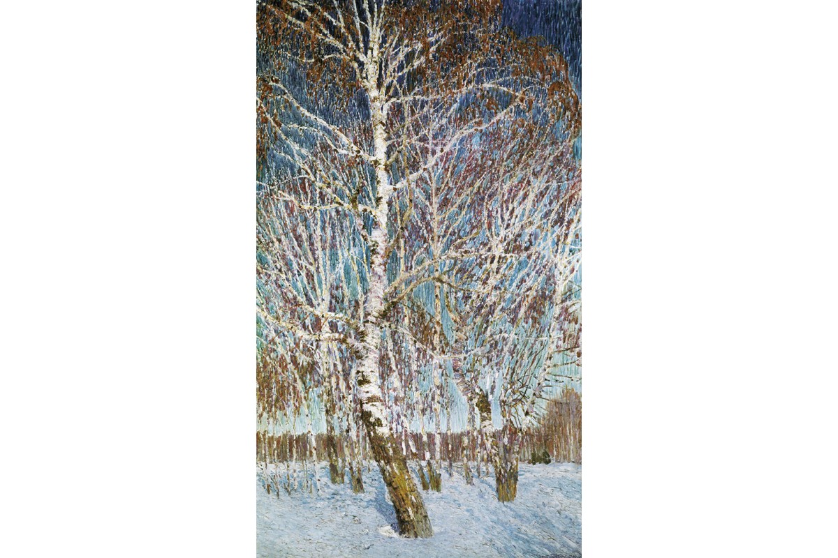 Осип Мандельштам «На бледно-голубой эмали…» | И. Э. Грабарь «Февральская лазурь» | |