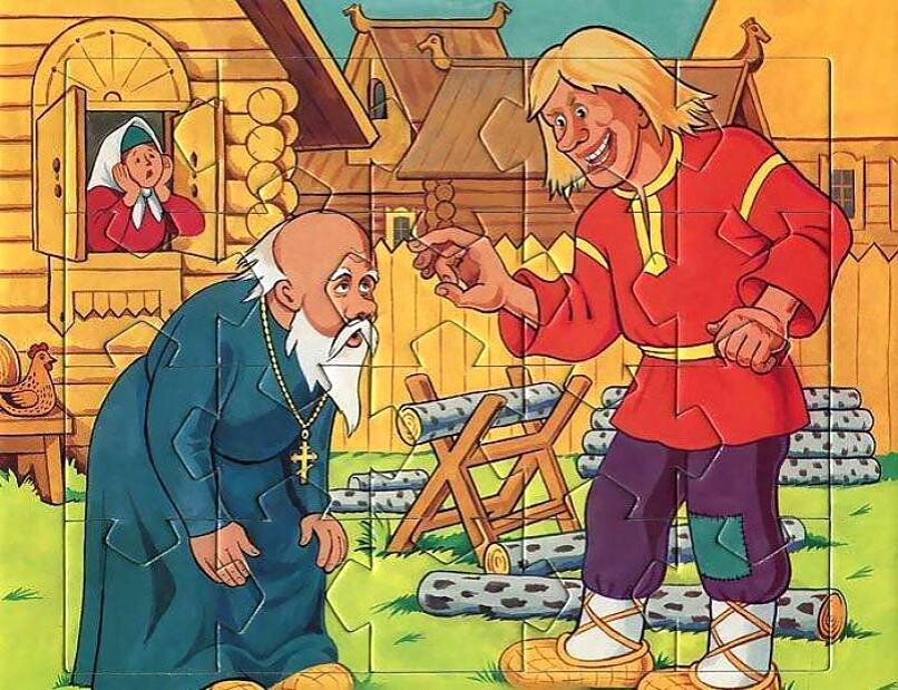 Задание: перед вами лежит два набора пазлов. Вы должны собрать иллюстрации, назвать сказки.