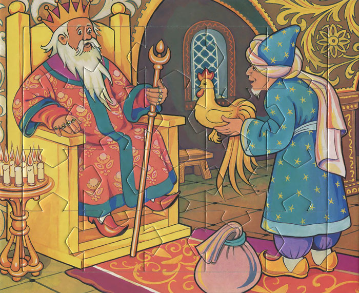 (Ответ:- Кири-ку-ку! Царствуй, лежа на боку!)