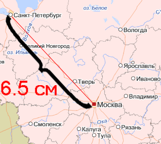 На карте – 7, 2 см.