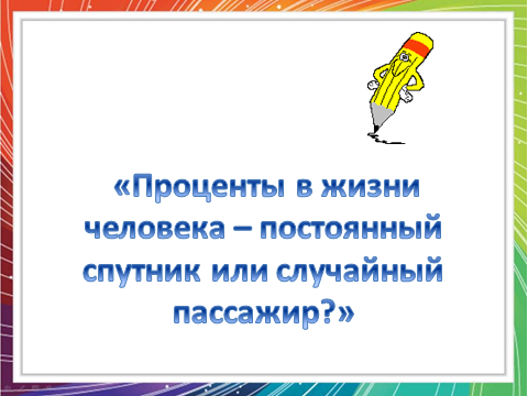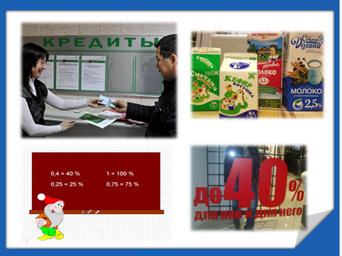 - Здравствуйте! Посмотрите на картинки и скажите, о чем мы сегодня будем говорить? Правильно! Предлагаю Вам порассуждать на тему «Проценты в жизни человека постоянный спутник или случайный пассажир?»