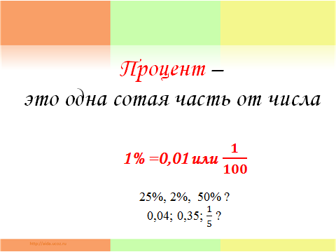 Актуализация знаний (7 минут) | Повторим понятие процента, его обозначение.