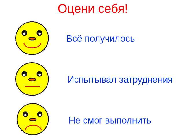 Подводим итоги -Я теперь знаю, как … - Я теперь умею … -Мне пока трудно … -Мне понравилось … |