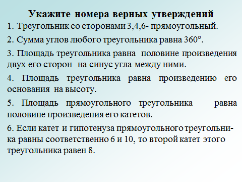Конспект урока по математике" Решение задач по теме «Площадь треугольника» "
