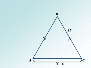 Боковая сторона равнобедренного треугольника АВС равна 17, а основание равно 16. Найдите площадь треугольника АВС