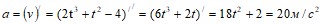 . Скорость и ускорение в момент времени t=1 c вычисляется: