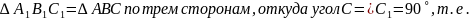∆АВС – прямоугольный. Итак, если квадрат одной стороны треугольника равен сумме квадратов двух других сторон, то треугольник прямоугольный.