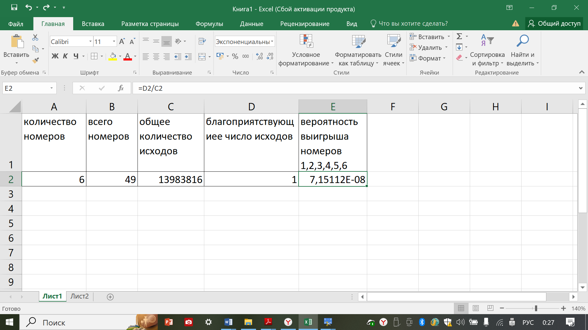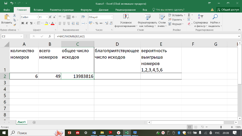 Практическая работа "Вычисление вероятностей с использованием комбинаторных функций электронных таблиц"